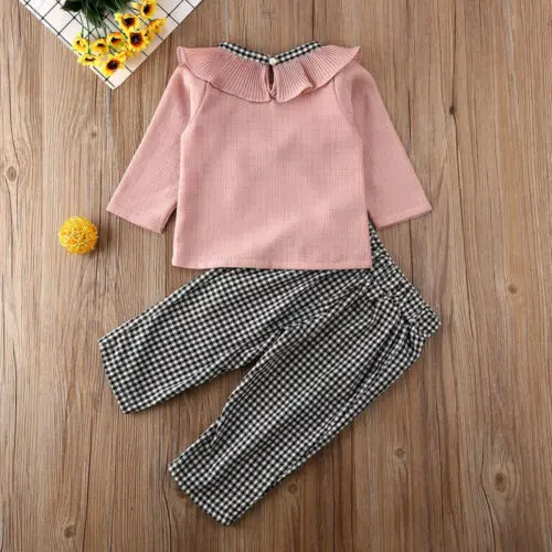 Special Offer 子供ベイビーガールフリル長袖チェック柄パンツ幼児服衣装セット子供秋セット1-6t Discount 10% Today!