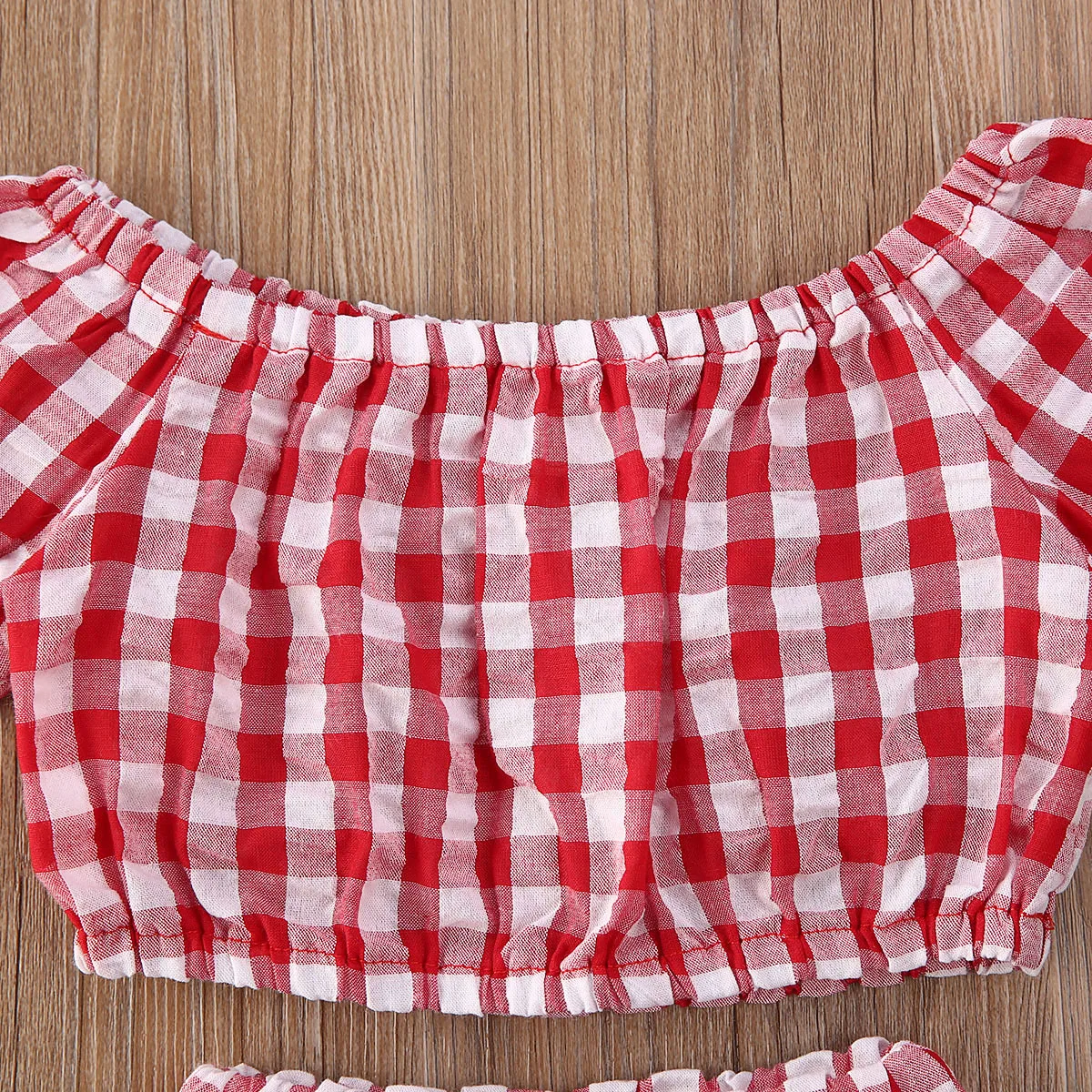 . (10% Off) 買取 2個夏の幼児ガール服セットチェック柄オフショルダートップス弓ショーツパンツアウトフィット6m-4t 通販 価格.