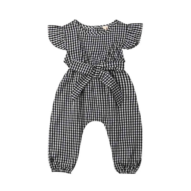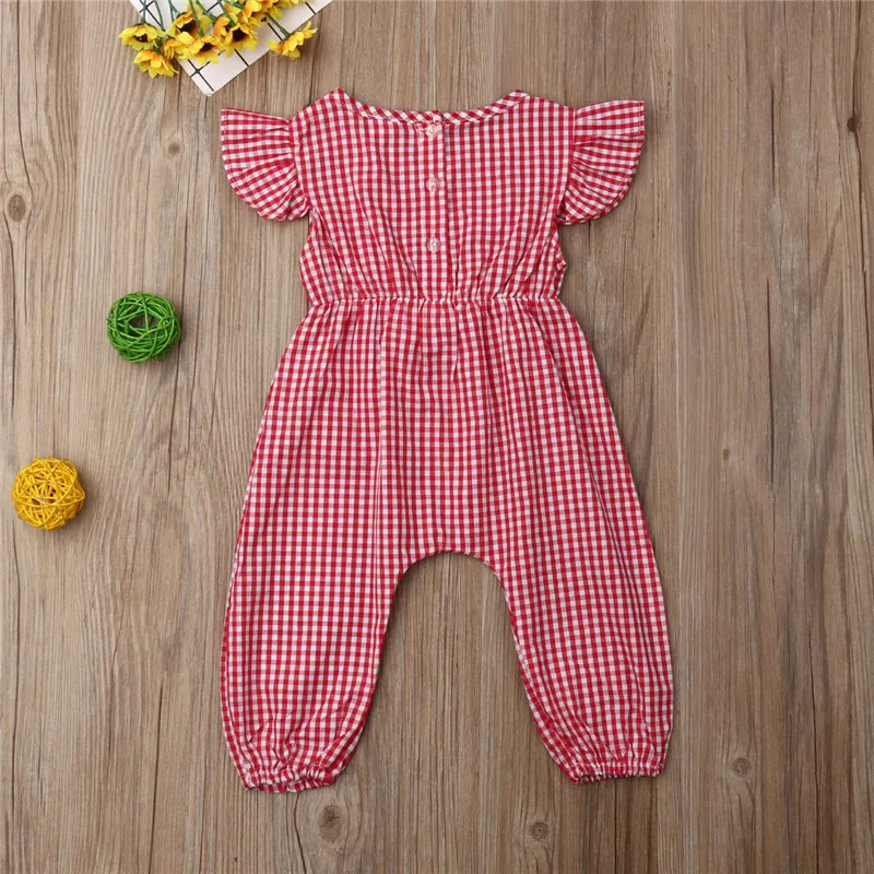 . (15% Off) 激安 赤、黒、夏ベビーチェック柄ロンパースファッション新生児子供半袖ちょう結び長ズボンカジュアル子供服子供 通販 価格.