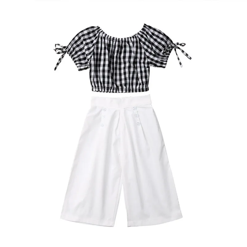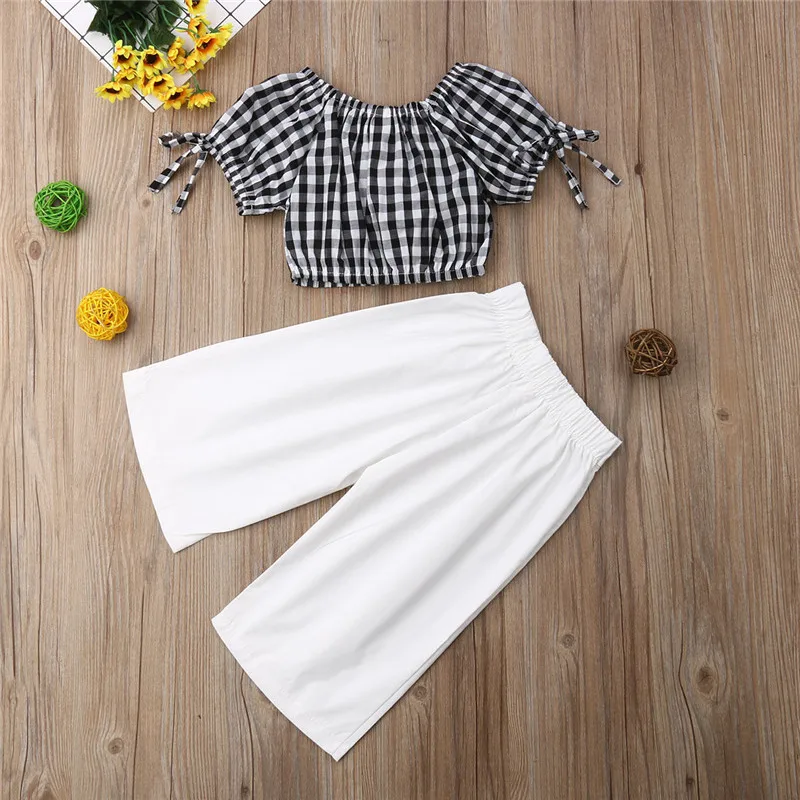 . (16% Off) 安い 夏子供キッズベビーガールズ服セットスーツ半袖チェック柄作物トップ + パンツアウトフィット服2-6年 通販 価格.