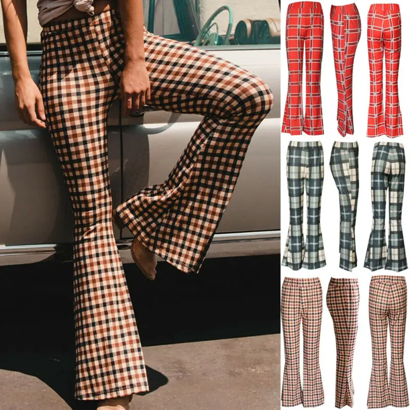 . (16% Off) 激安 2020 女性レディースレトロパッチワークチェック柄パターンベルボトム長ズボン、女性のファッションカジュアル長ズボン オンライン 価格.