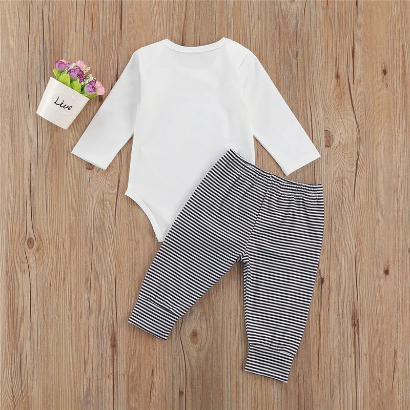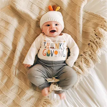 . (20% Off) 激安 男の赤ちゃん服幼児新生児3個感謝祭スーツの手紙ロンパーストップ + ストライプパンツ + チェック柄帽子セット детская одежда オンライン 価格.