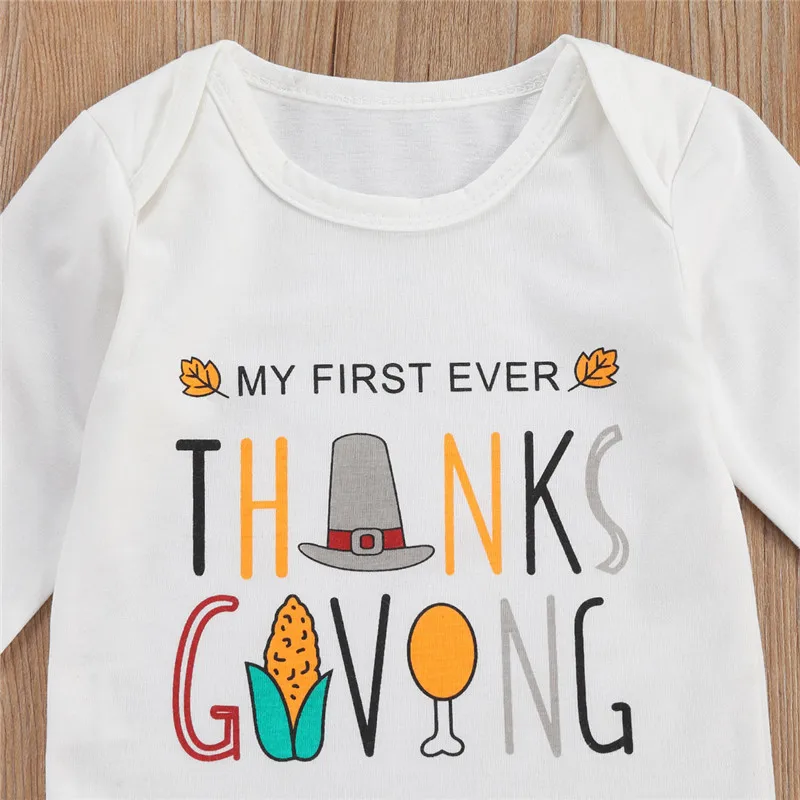 Special Offer 男の赤ちゃん服幼児新生児3個感謝祭スーツの手紙ロンパーストップ + ストライプパンツ + チェック柄帽子セット детская одежда Discount 20% Today!