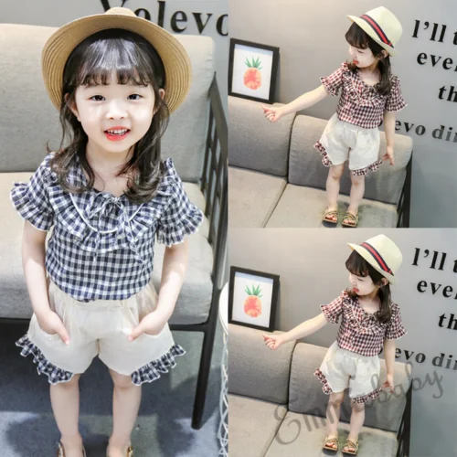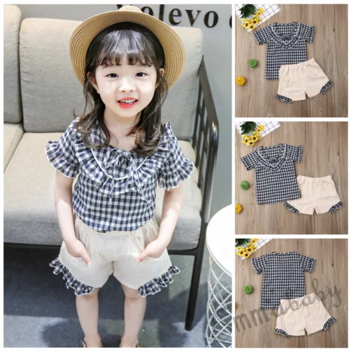 Special Offer 夏女の赤ちゃんチェック柄tシャツトップ & パンツショーツ服衣装 Discount 20% Today!