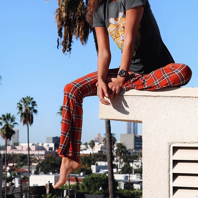 Special Offer ヴィンテージチェック柄女性女の子ハイウエストベルボトム長フレアパンツストレッチ自由奔放に生きるヒッピーベルボトムパンツ Discount 20% Today!