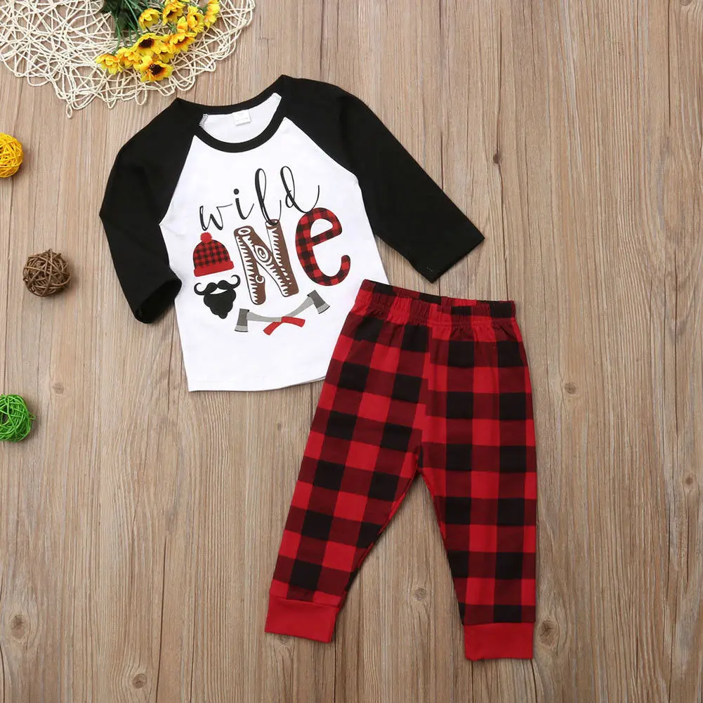 Special Offer ベビー手紙野生チェック柄の服セットの幼児の少女の手紙トップスシャツ長ズボン秋服服セット Discount 20% Today!