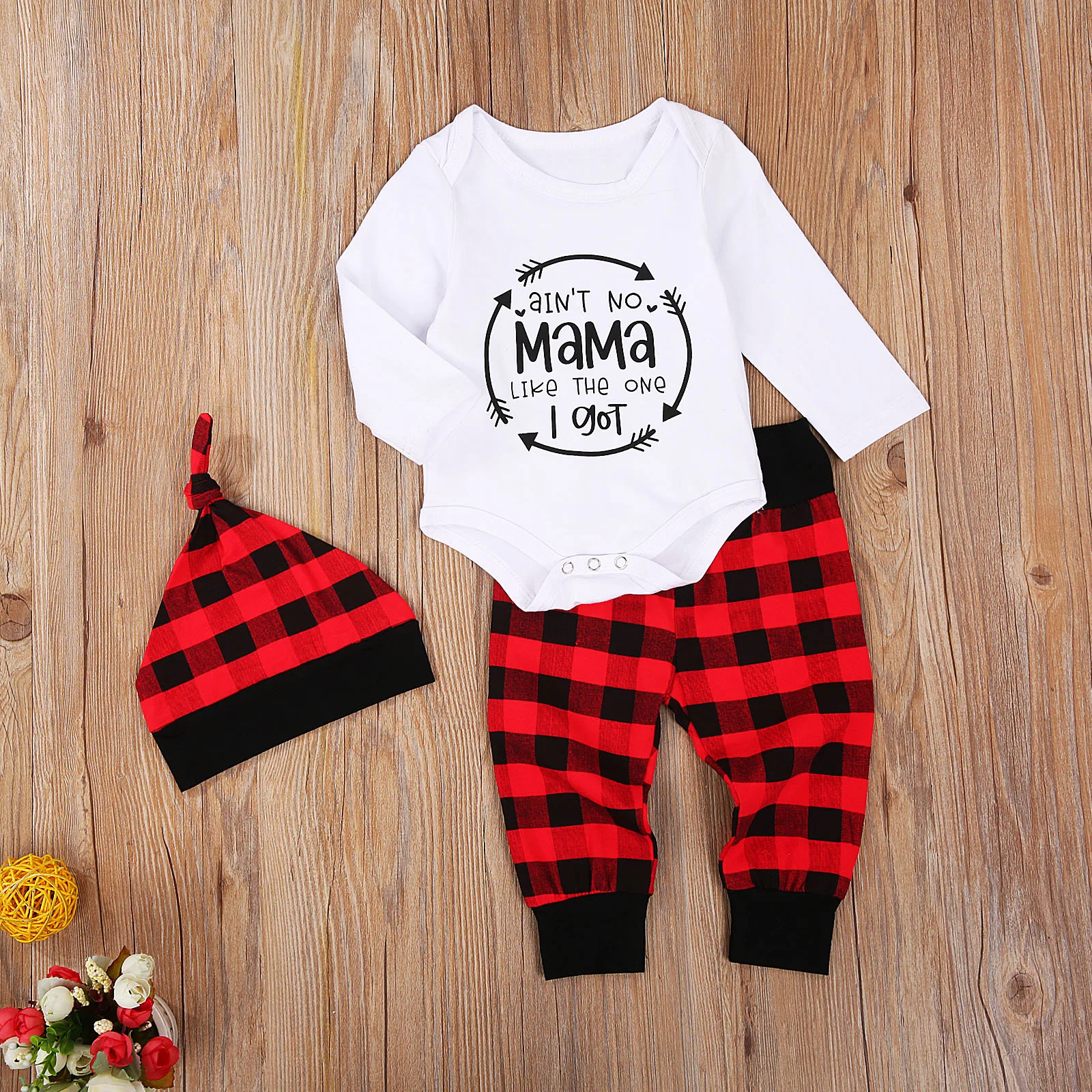 . (21% Off) 買取 2020新生児チェック柄3本セット幼児ガールズボーイズ手紙プリントロンパース + 長ズボン + 帽子カジュアル服春の秋0-24m オンライン 価格.
