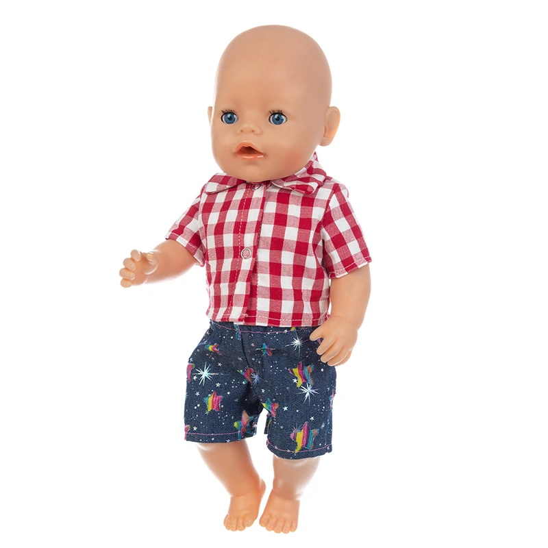 . (23% Off) 激安 生まれ新赤ちゃんフィット17インチアメリカ43センチメートル人形の服のアクセサリー赤チェック柄シャツジーンズパンツ誕生日ギフト 通販 価格.