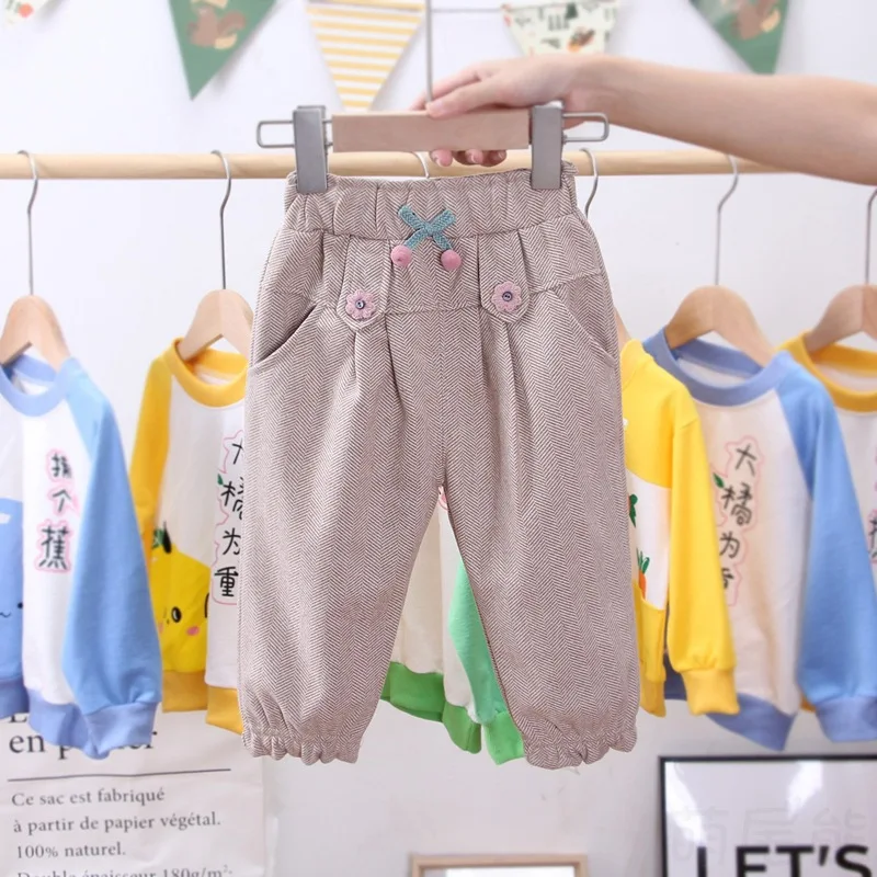 Special Offer 女の子秋と冬服韓国スタイルのチェック柄ルーズストレート脚足首までの長さパンツ Discount 30% Today!