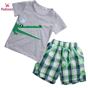 . (32% Off) 買取 Pudcoco カジュアル 2 個の幼児の子供少年の服の綿漫画のチェック柄セットトップス Tシャツ夏服セット 1-7 T 通販 価格.