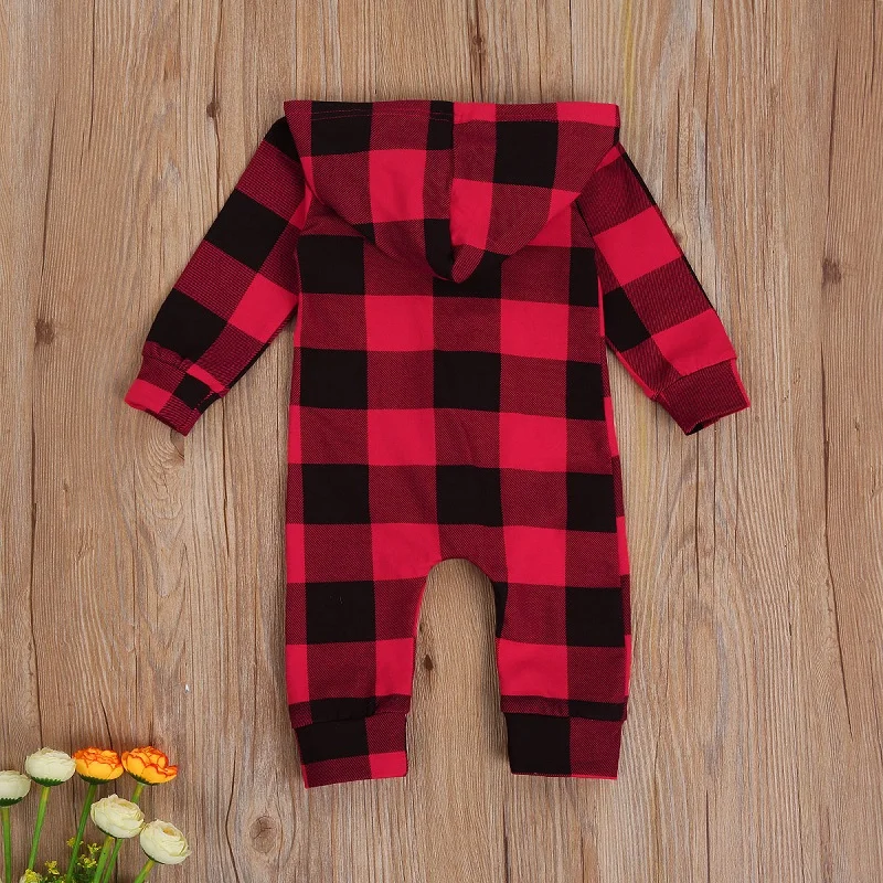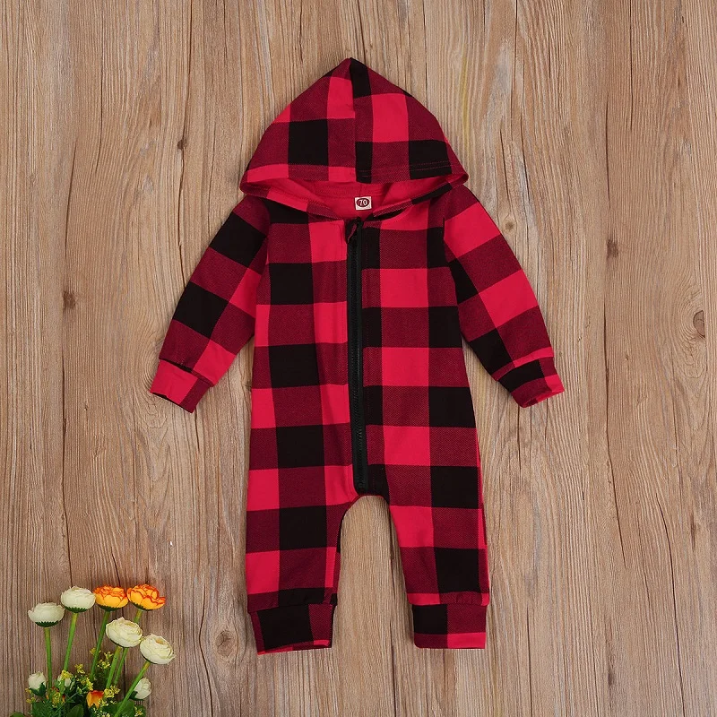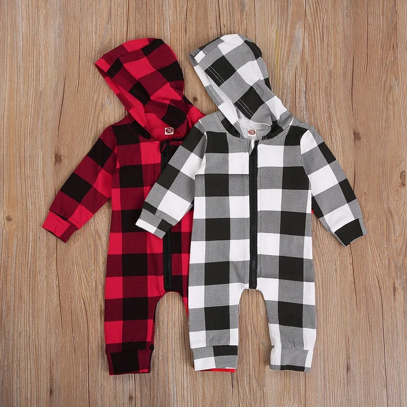 Special Offer 真新しい男の子の長袖ジャンプスーツ秋の人格格子縞のフード付きジッパーアップワンピース長ズボン Discount 32% Today!