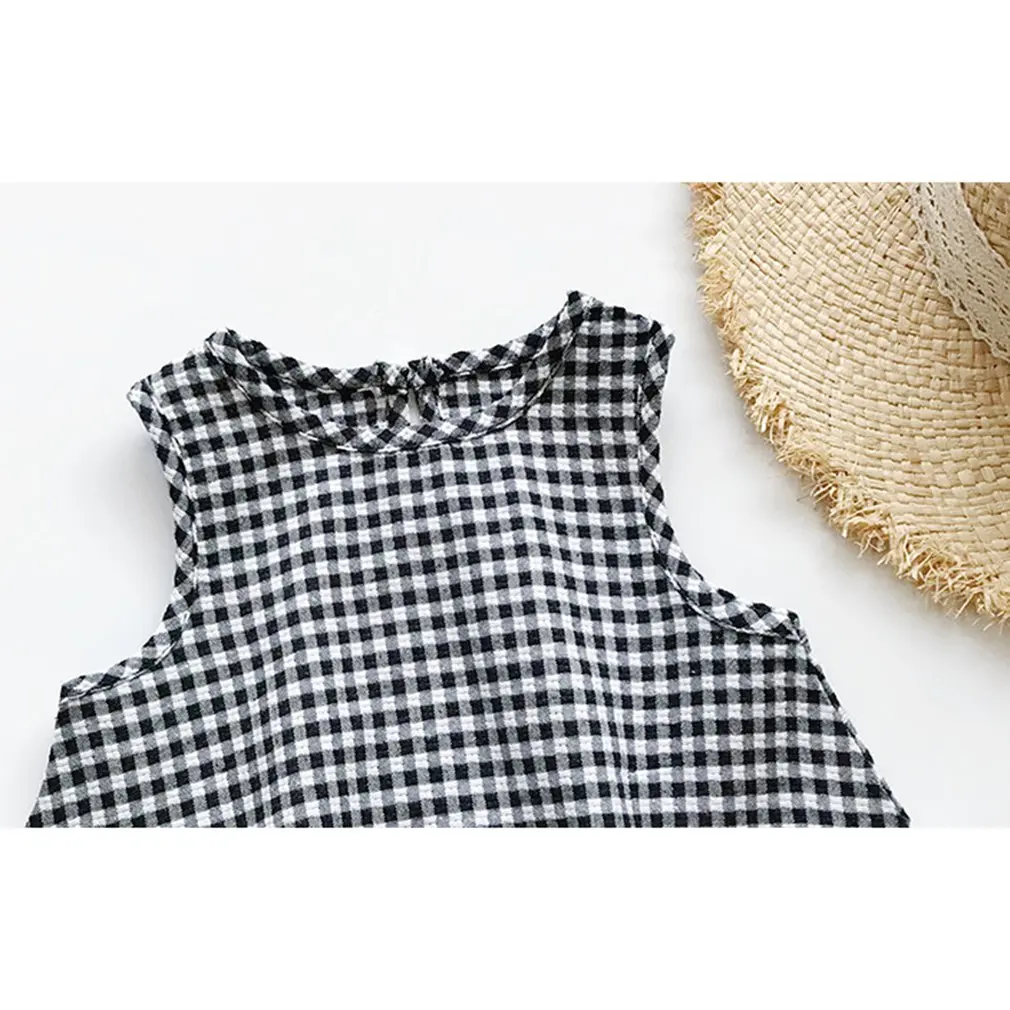. (40% Off) 激安 西洋スタイル女子ワイド脚パンツスーツ子供服夏子供韓国スタイル格子縞のベストスーツ 通販 価格.