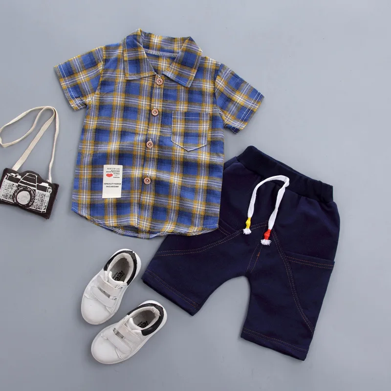 . (41% Off) 買取 Diimuu 2 個夏男の赤ちゃん格子縞の綿の服セットショーツスリーブレターシャツカジュアルソリッド弾性パンツスーツ オンライン 価格.