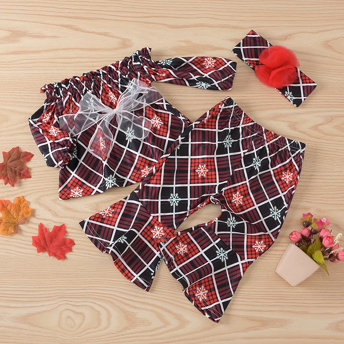 . (50% Off) 激安 赤ちゃんのチェック柄 3 点セットオフショルダーロングスリーブトップフレアパンツ帽子幼児子供プリンセスドレスコットンガールのセット 0-5Y 通販 価格.