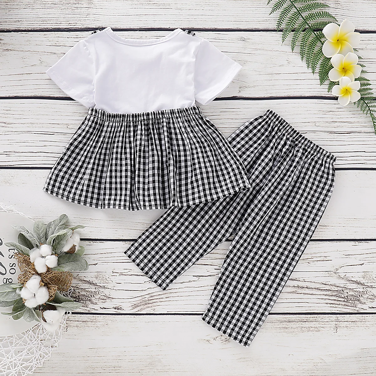 Product Name: 新しい幼児の子供の女の服セット夏の半袖チェック柄トップとロングパンツかわいいラブリースウィートコットンストリート衣装