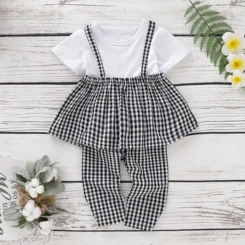 Special Offer 新しい幼児の子供の女の服セット夏の半袖チェック柄トップとロングパンツかわいいラブリースウィートコットンストリート衣装 Discount 50% Today!