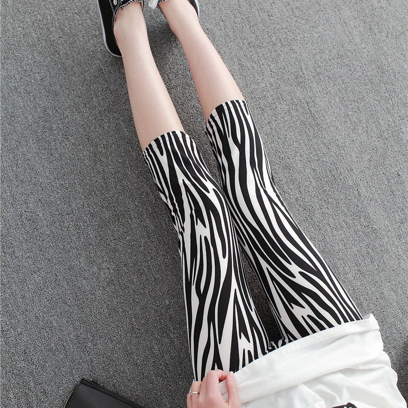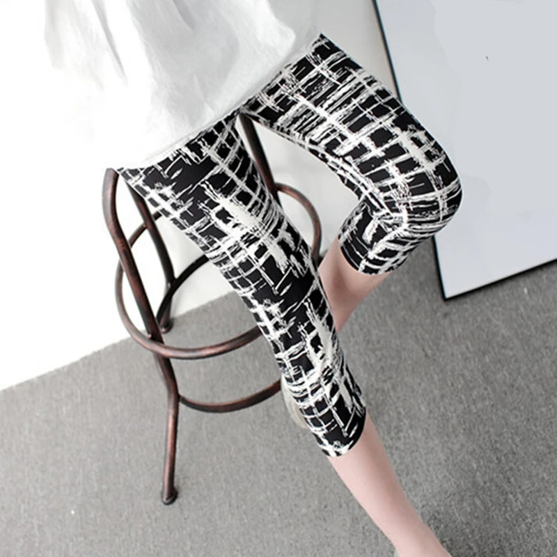 Product Name: Cuhakci女性のふくらはぎ丈レギンスプリントグリッドショートパンツmujerカジュアル弾性ストライプレギンス大サイズフィットネスレギンス