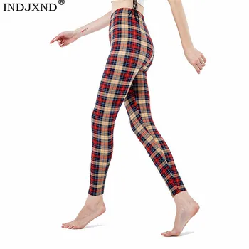 Special Offer Indjxnd女性ファッションフィットネスレギンスチェック柄プリント弾性ウエスト花カジュアルパンツ鉛筆ストレッチスキニーズボンxxxl Discount 5% Today!