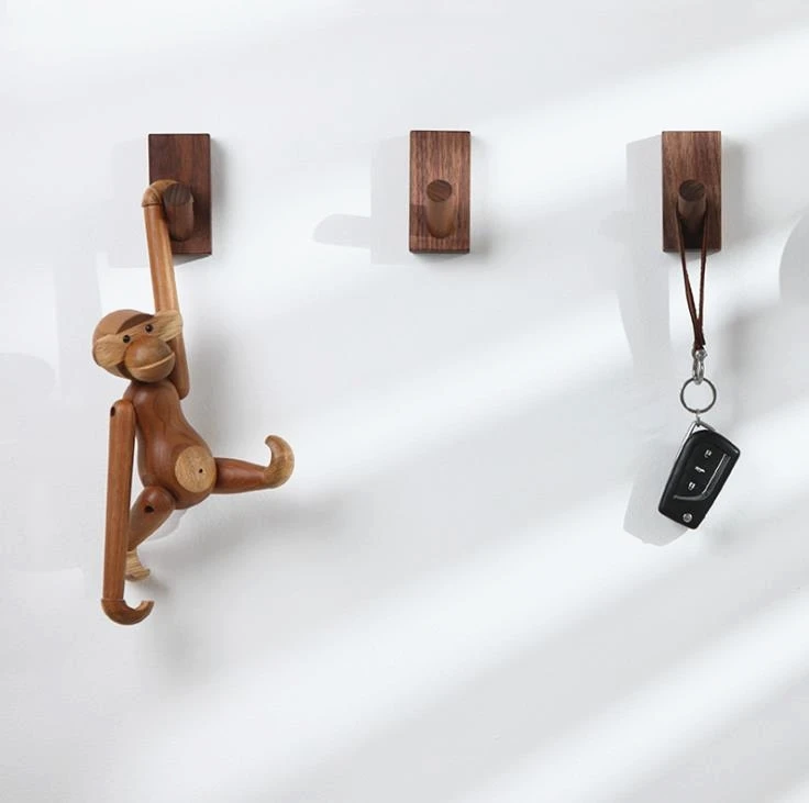 Product Name: LCH Styl Skandynawski Drewno Dębowe Czarny Orzech Drewno Haczyk Na Ubrania Brelok Na Klucze Uchwyt Do Szafki Uchwyty Kolor Mosiądzu Entryway Wood Hook