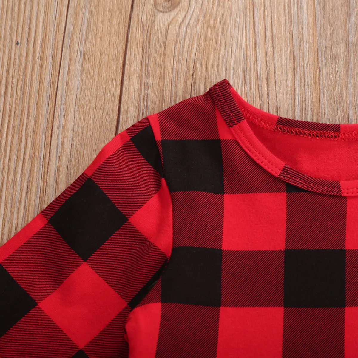 Special Offer 3本の子供のスーツセットチェック柄ラウンドネック長袖ドレストップ + ロングパンツ + ヘッドバンド服セット Discount 10% Today!