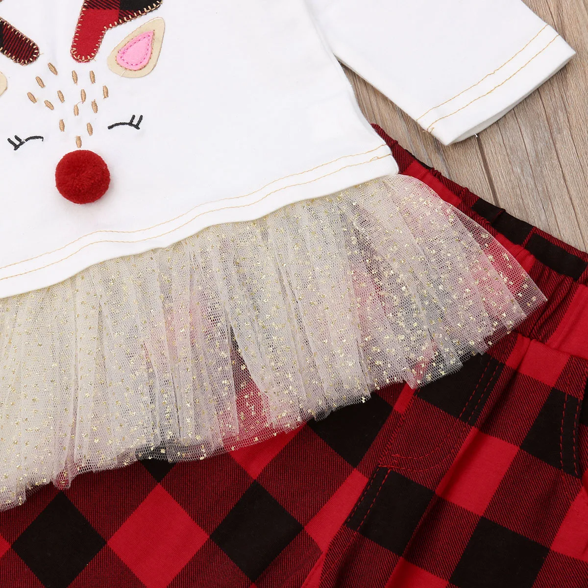 Special Offer 米国クリスマスキッズベビーガールチュチュは Tシャツ + チェック柄パンツ 2 ピース服セット Discount 10% Today!