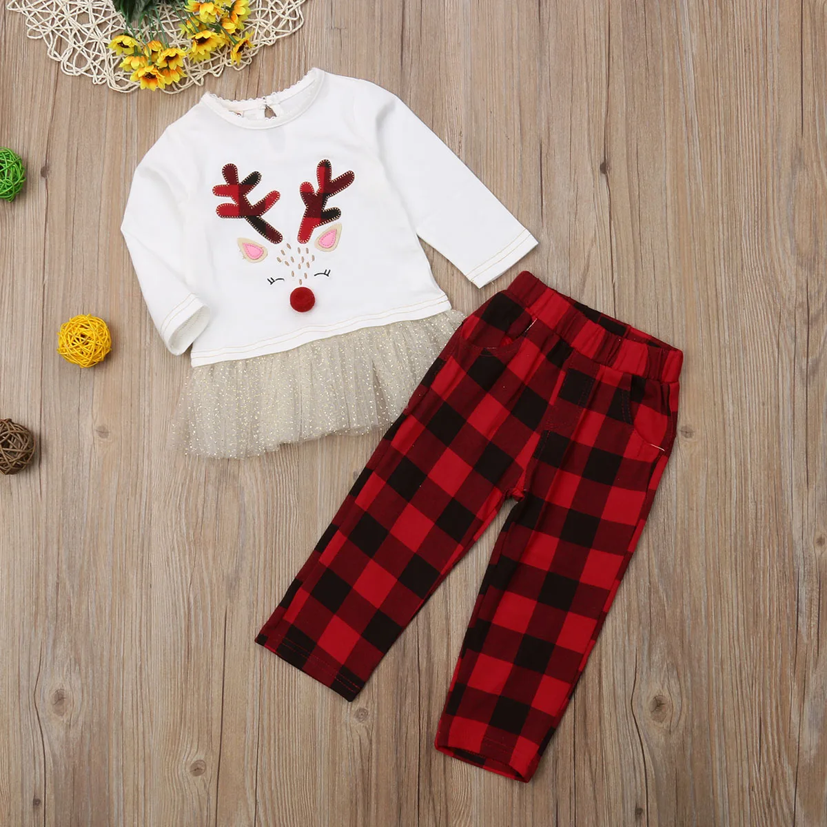 . (10% Off) 安い 米国クリスマスキッズベビーガールチュチュは Tシャツ + チェック柄パンツ 2 ピース服セット オンライン 価格.