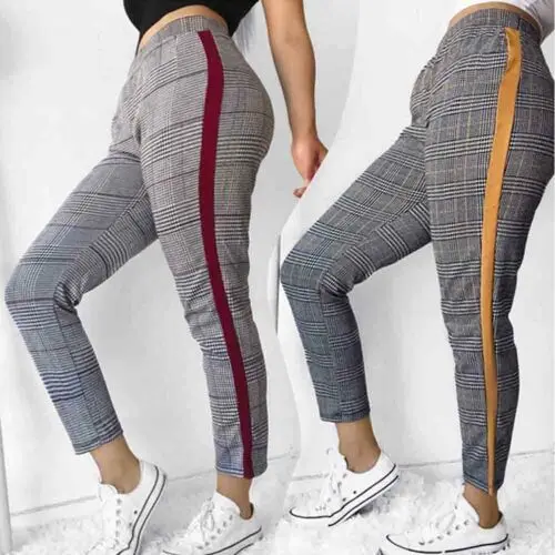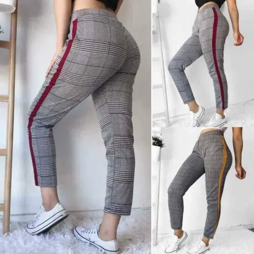 . (19% Off) 安い レディースストレッチスキニーチェック柄スリムデニムハイウエスト鉛筆のズボン オンライン 価格.