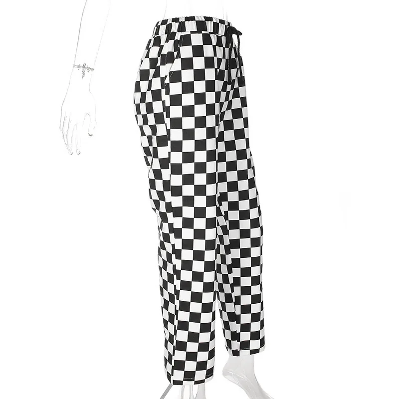 Special Offer 春 2020 新しい女性の黒と白の市松チェックコントラスト弾性バンド薄型カジュアルパンツ女性ワイド脚パンツ Discount 20% Today!