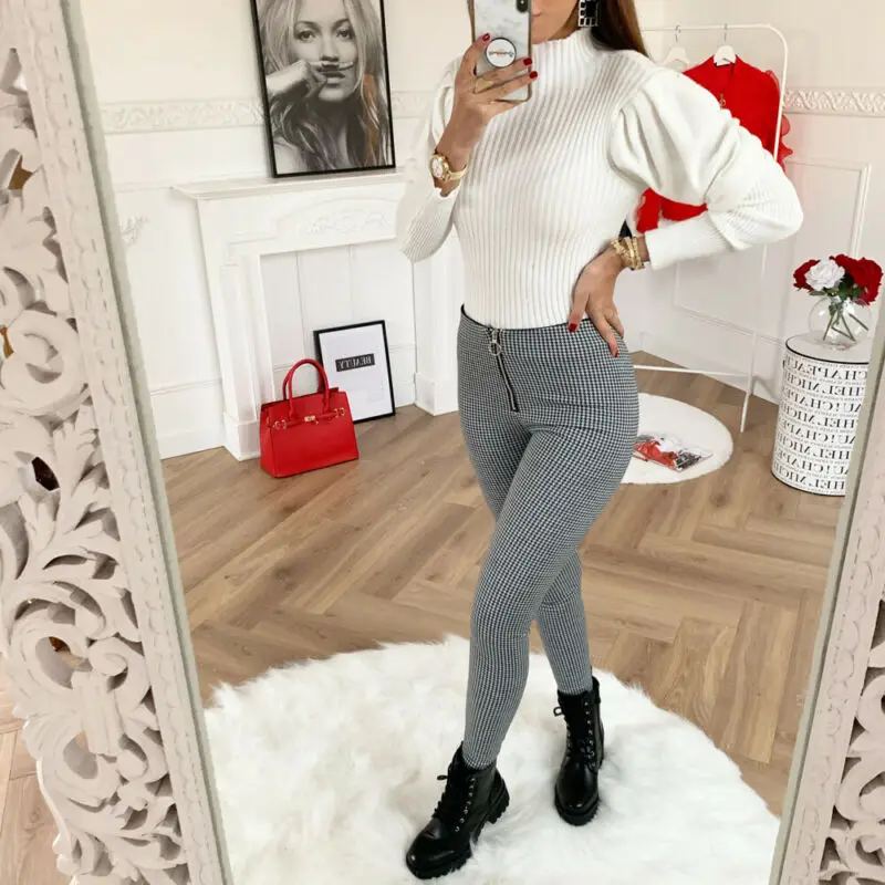 . (20% Off) 安い Fashion Women High Waist Zipper Skinny Slim Pants Stretchy Leggings Office Casual Long Pants 通販 価格.