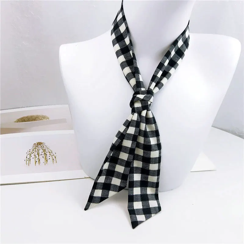 Special Offer チェック柄女性スカーフ春秋ネックスカーフ女性細身ストリップ狭い手首パンツ装飾スカーフベルトバッグリボン Discount 20% Today!