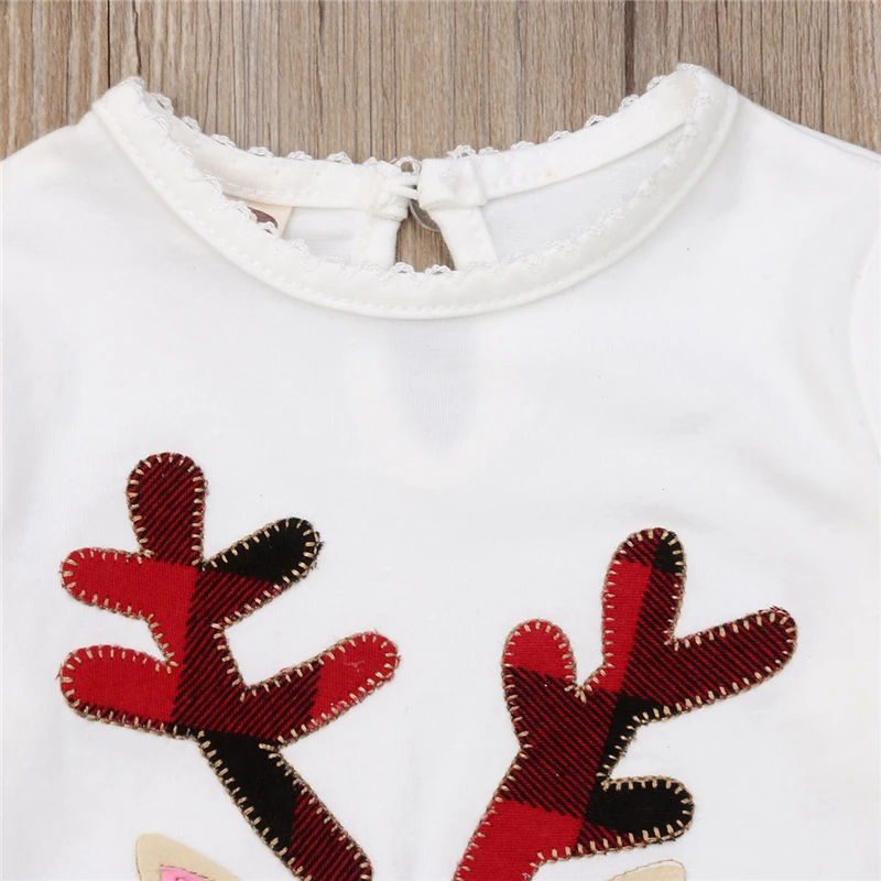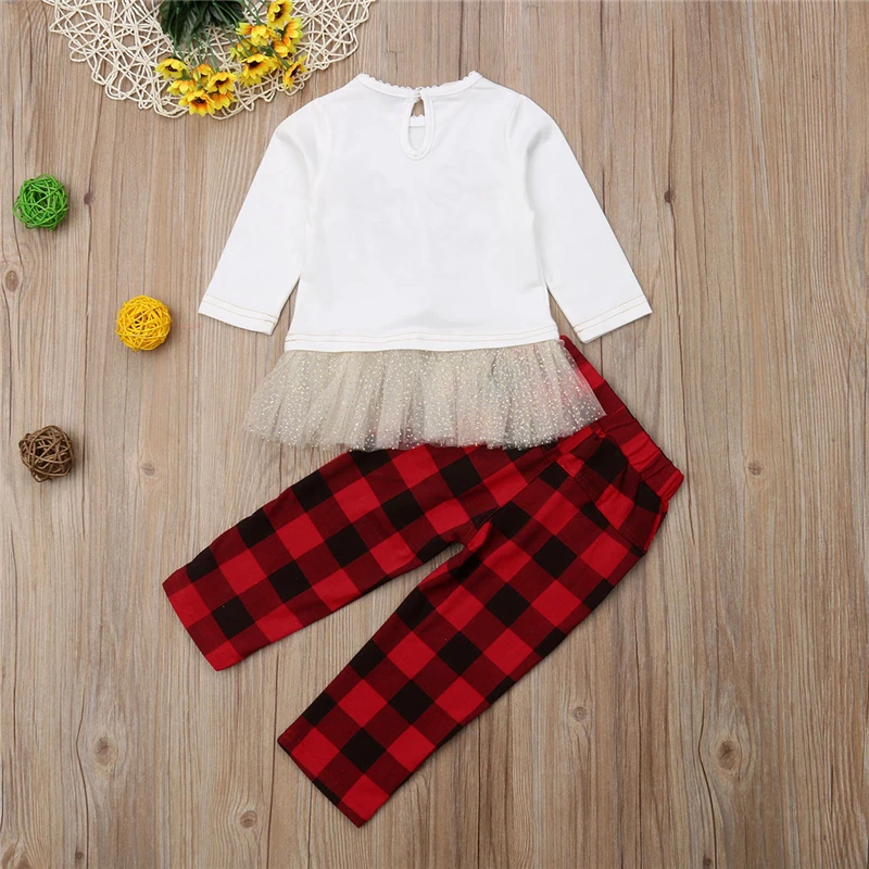 Special Offer 子供クリスマス服プリントタッセルチュチュドレス長袖トップス + チェック柄パンツ2個クリスマス衣装セット Discount 23% Today!