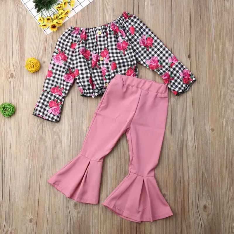 . (35% Off) 安い 子供服 2 個キッズベビー女の子花トップス固体パンツベルボトム服セット Roupa Infantil 衣装 オンライン 価格.