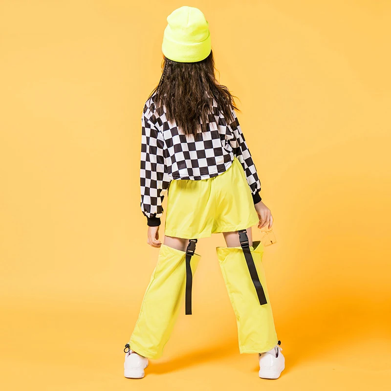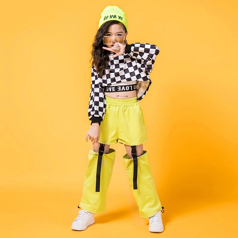 . (35% Off) 安い 子供ヒップホップの服ブラックホワイトタータンチェックトレーナー作物トップス中空カジュアル女の子ジャズダンス服ストリートステージ衣装 通販 価格.