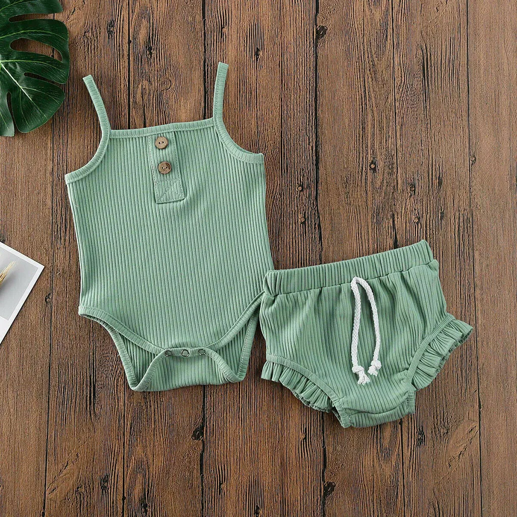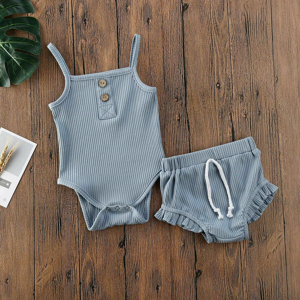 Special Offer 夏新生児服セット子供服新生児女の赤ちゃんストラップ固体ロンパーストップスショーツパンツセット夏の服装 Discount 40% Today!