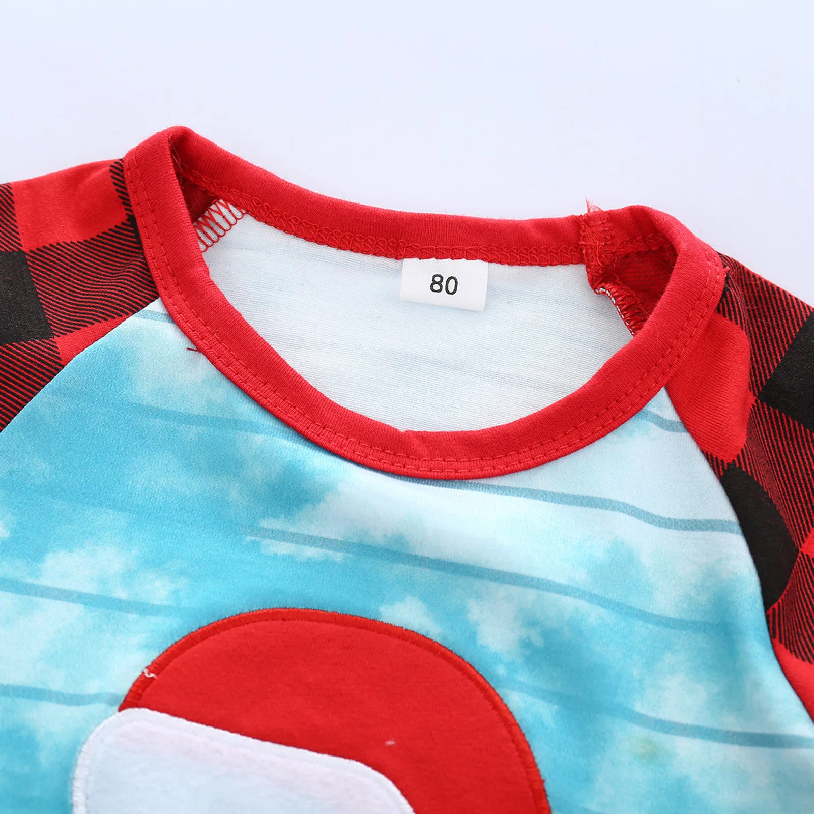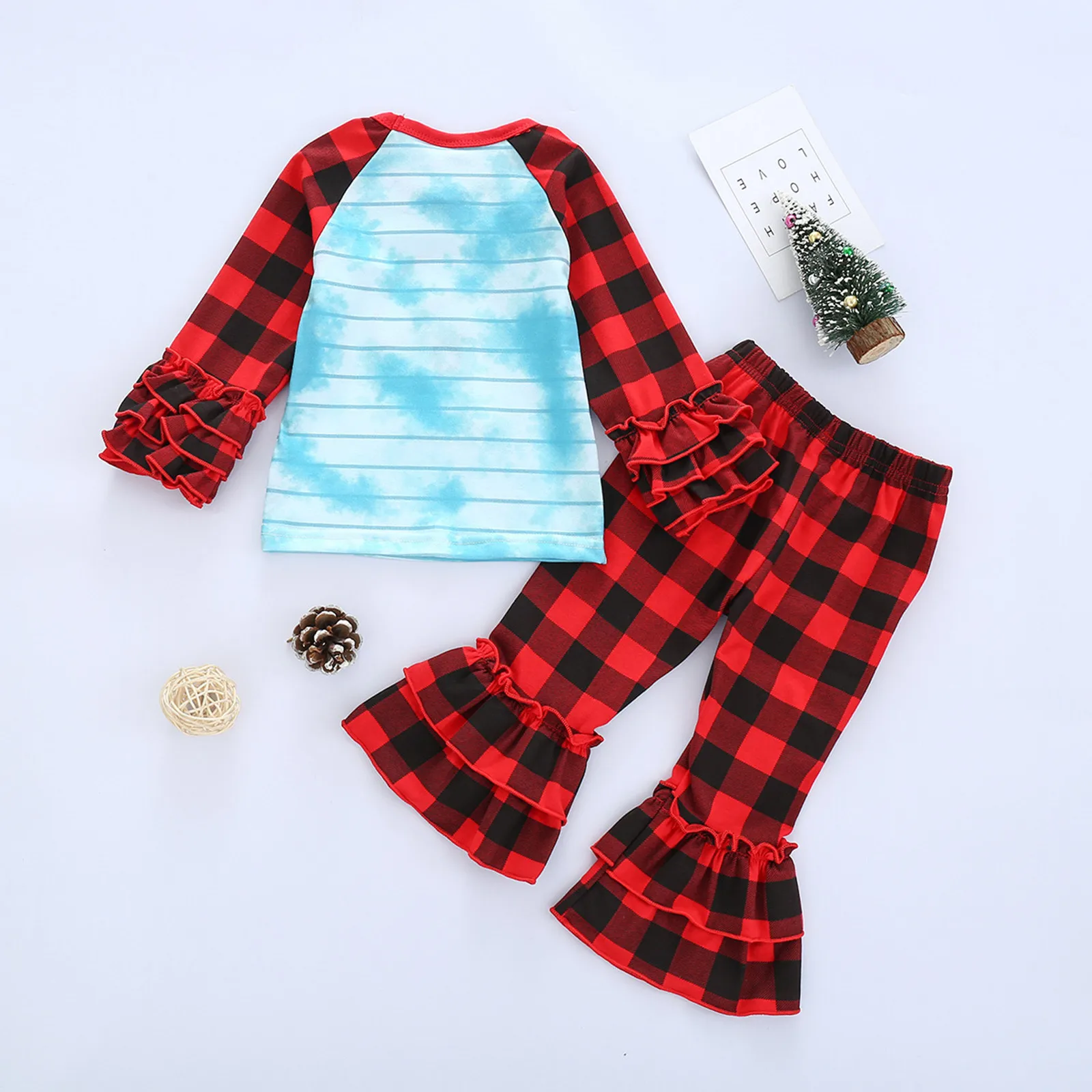 . (46% Off) 買取 幼児女の赤ちゃん服フリル長袖クリスマス漫画パッチワークチェック柄トップス + パンツセットアンサンブルベベfille-新 通販 価格.