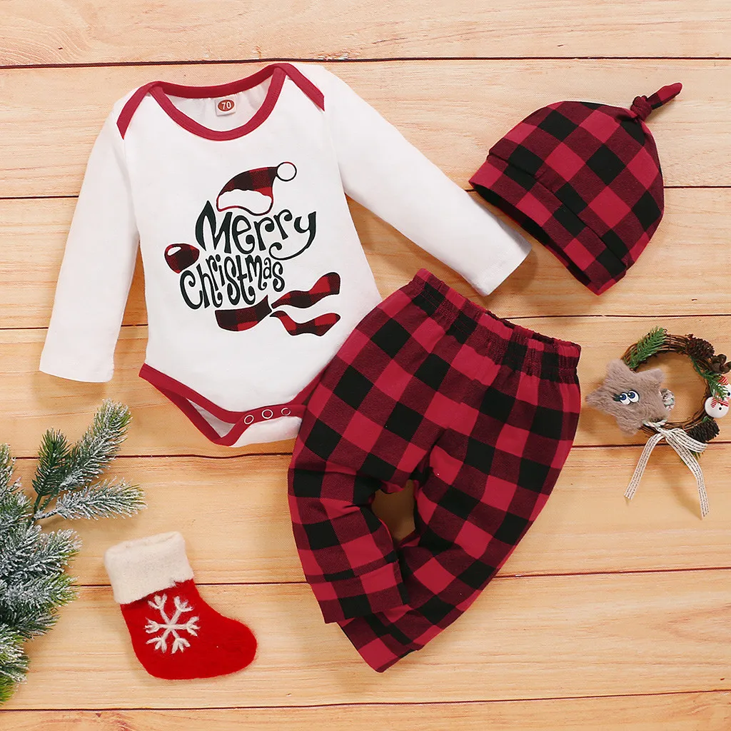 . (48% Off) 安い #43 3m-18m幼児ベビーガールズボーイズクリスマスの手紙ファッション漫画ボディスーツロンパース + チェック柄パンツ + 帽子衣装 детская одежда オンライン 価格.