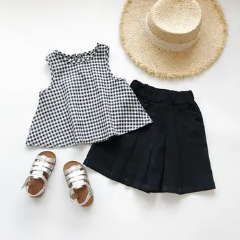 . (52% Off) 激安 西洋スタイル女子ワイド脚パンツスーツ子供服夏子供韓国スタイル格子縞のベストスーツ オンライン 価格.