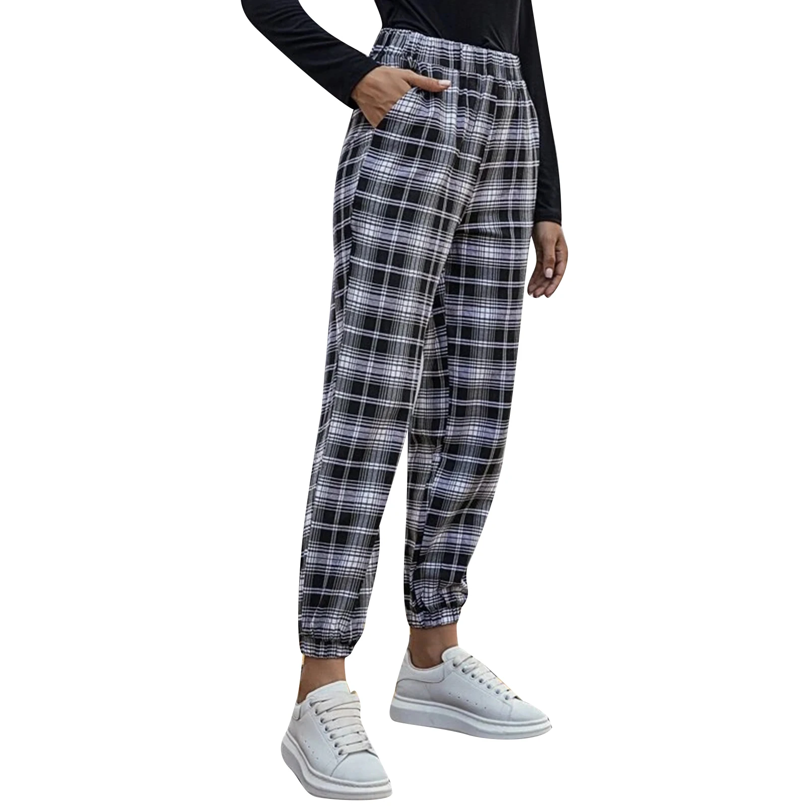 . (5% Off) 激安 女性カジュアルなチェック柄パンツ、弾性ウエスト足首の長さのスウェットパンツスポーツパンツ長ズボン 通販 価格.