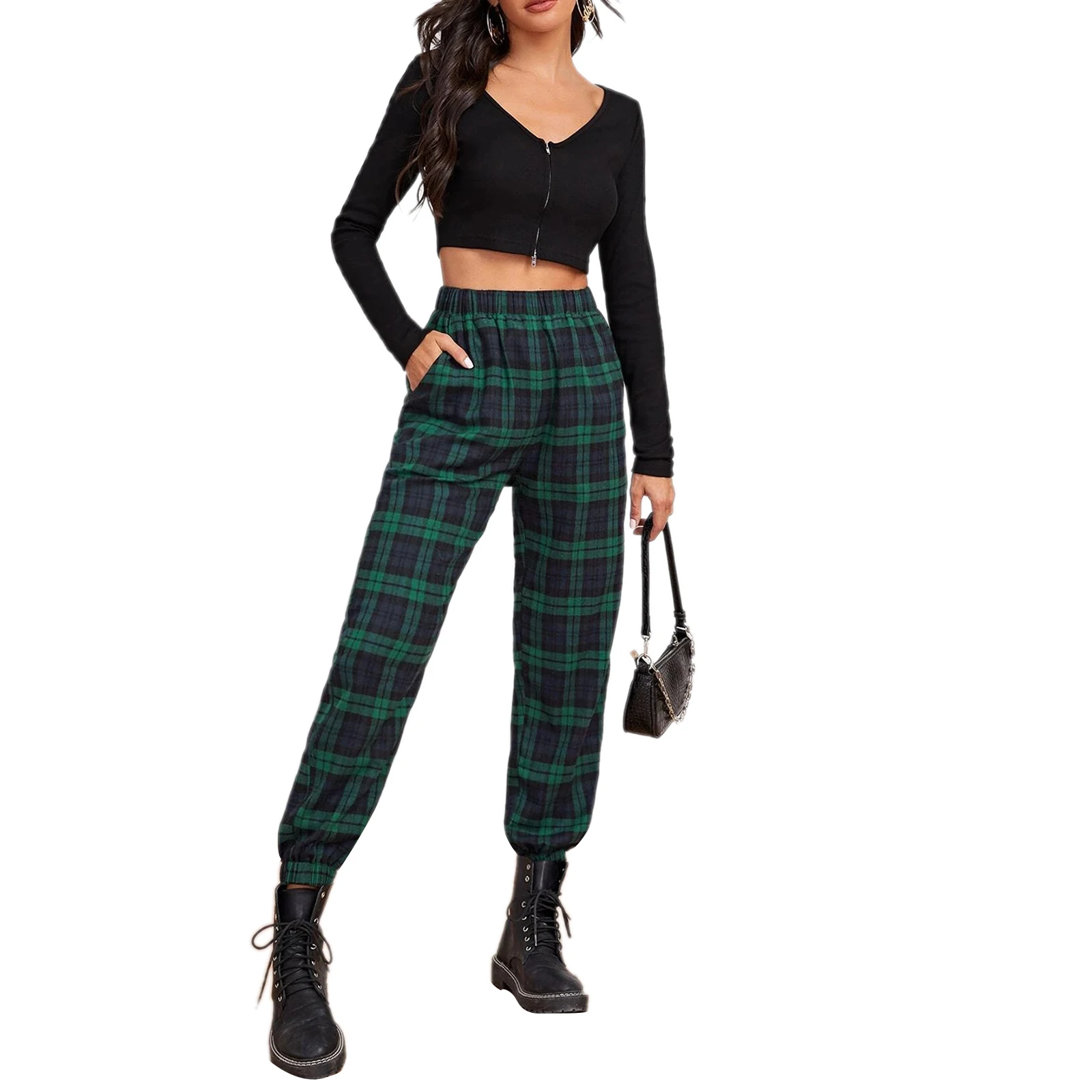 Special Offer 女性カジュアルなチェック柄パンツ、弾性ウエスト足首の長さのスウェットパンツスポーツパンツ長ズボン Discount 5% Today!