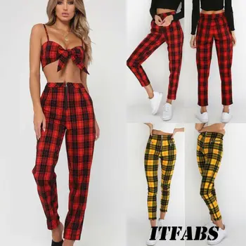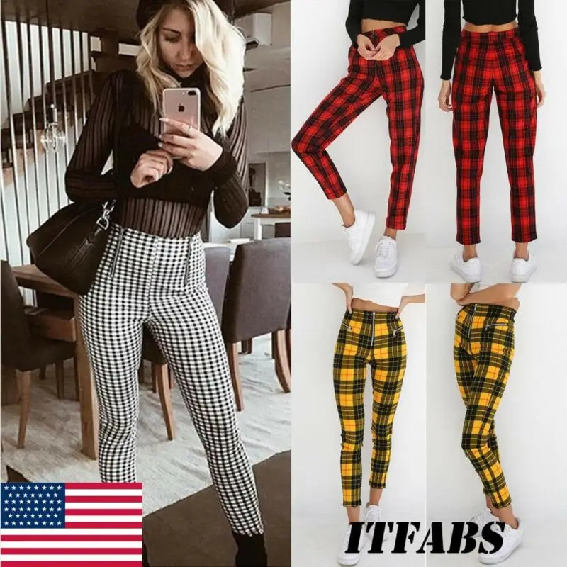 . (12% Off) 買取 女性ジッパースキニーオフィスハイウエストパンツチェック柄伸縮性ウエストデニム鉛筆のズボンのズボン 通販 価格.