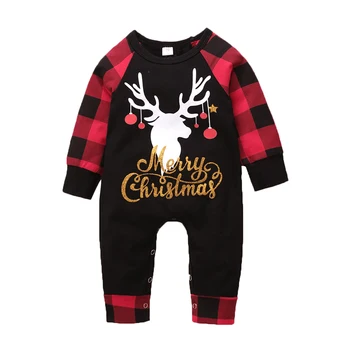 Special Offer 新生児少年クリスマス服長袖ヘラジカレタープリントチェック柄ステッチワンピースロングパンツ服秋 Discount 14% Today!