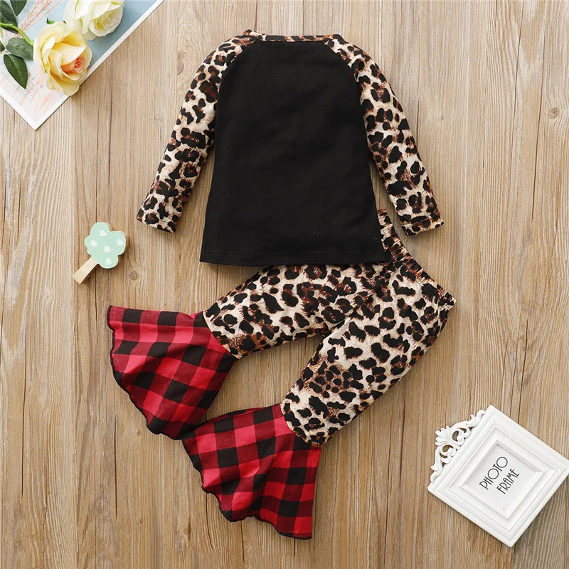 . (15% Off) 買取 女の子服セット新2021ガールズヒョウ服長袖パッチワークトップス + チェック柄パンツ子供のスーツファッション子供服 通販 価格.
