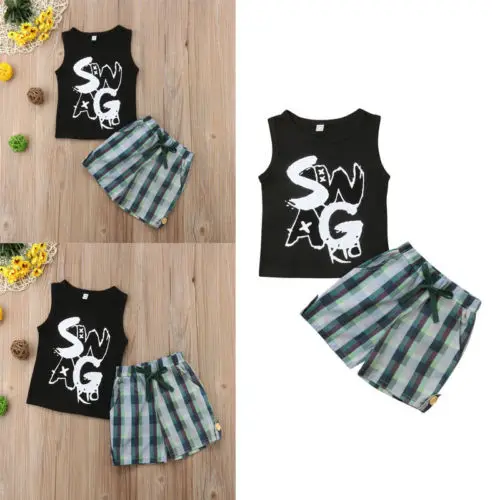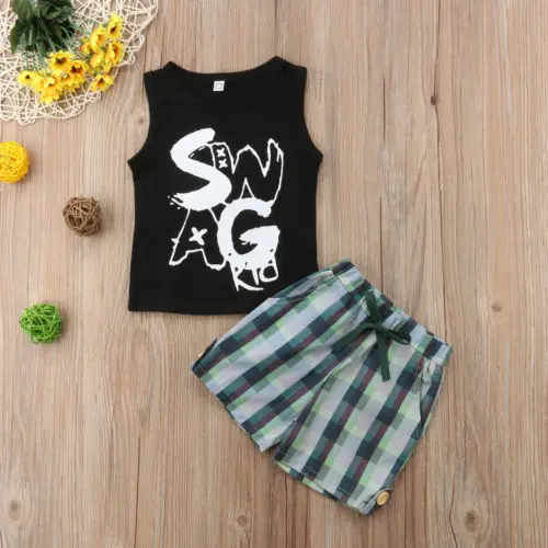 . (16% Off) 激安 ホット2018新しい夏幼児赤ちゃん男の子手紙ベスト黒タンクトップチェックショーツパンツ子供服セットかわいい 通販 価格.