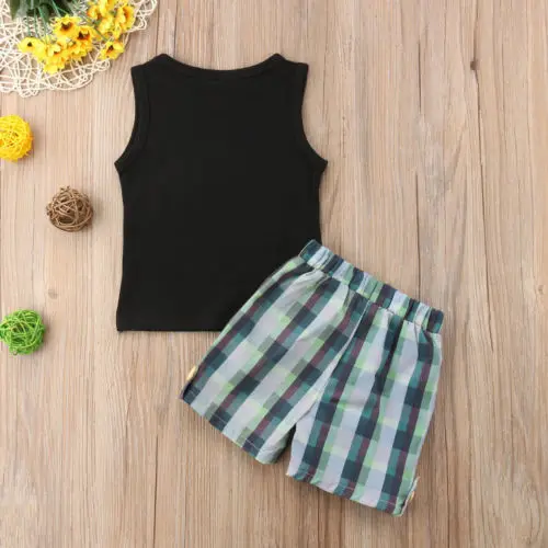 Special Offer ホット2018新しい夏幼児赤ちゃん男の子手紙ベスト黒タンクトップチェックショーツパンツ子供服セットかわいい Discount 16% Today!