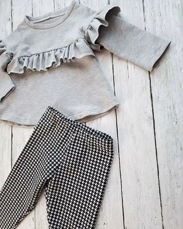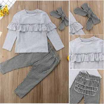 . (19% Off) 激安 秋幼児子供セット長袖フリルトップス + チェック柄パンツレギンス Tousers + ヘッドバンド 3 個女の子衣装 1-6T オンライン 価格.