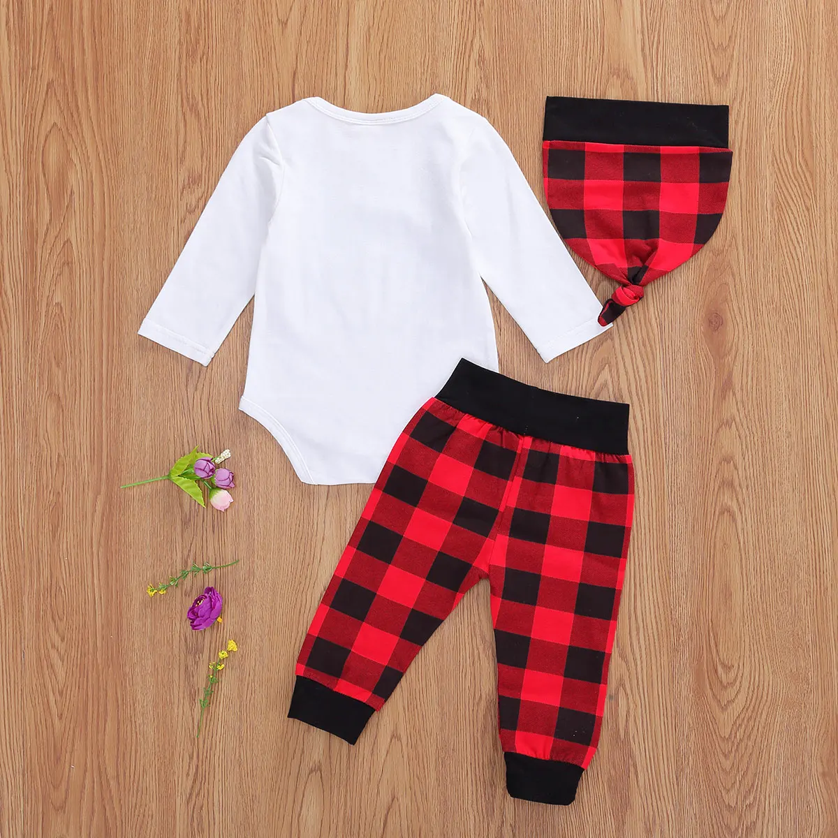 . (20% Off) 激安 幼児新生児 3 個カジュアル服スーツ長袖漫画手紙プリントロンパーストップ + チェック柄ロングパンツ + ビーニーキャップ 3 本セット 通販 価格.
