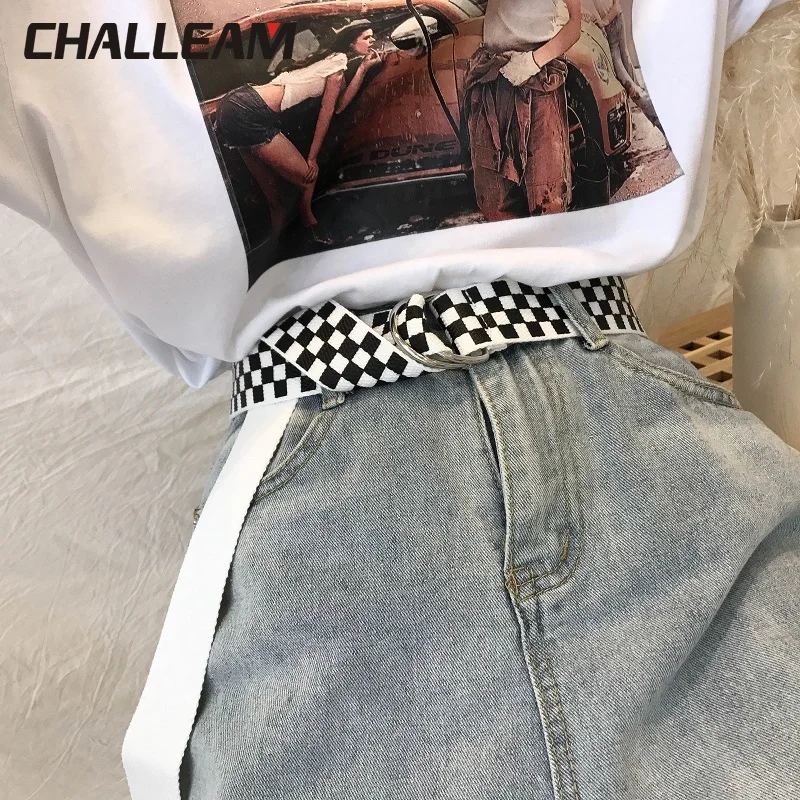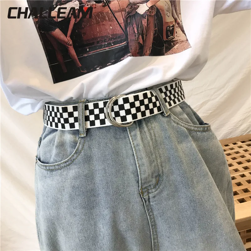 . (20% Off) 買取 女性市松ベルトカジュアル女性パンツジーンズキャンバスチェックベルトベルト黒、白市松ダブルdバックルベルト357 オンライン 価格.