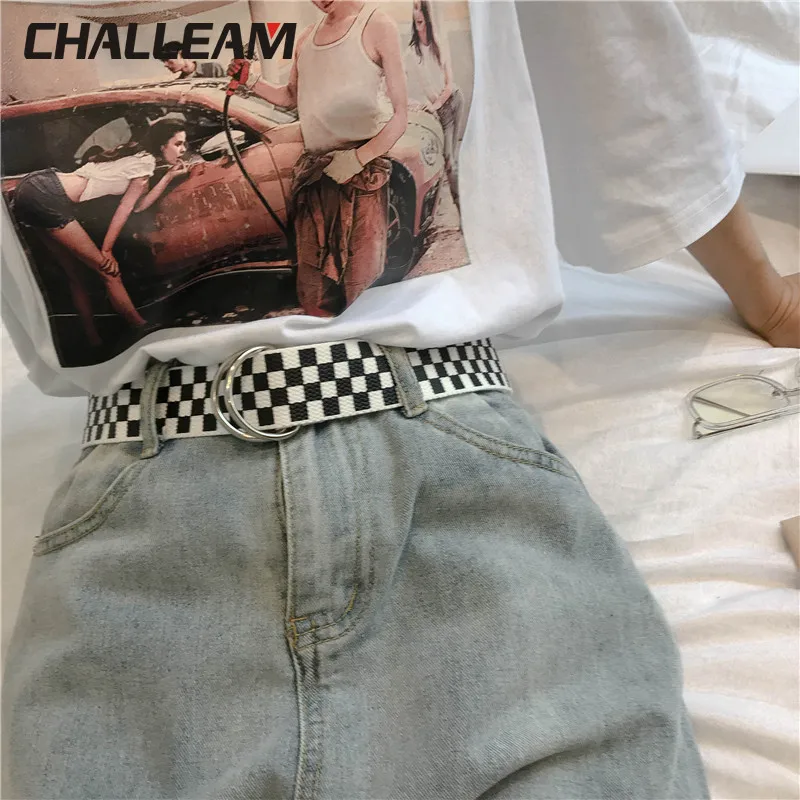 Special Offer 女性市松ベルトカジュアル女性パンツジーンズキャンバスチェックベルトベルト黒、白市松ダブルdバックルベルト357 Discount 20% Today!