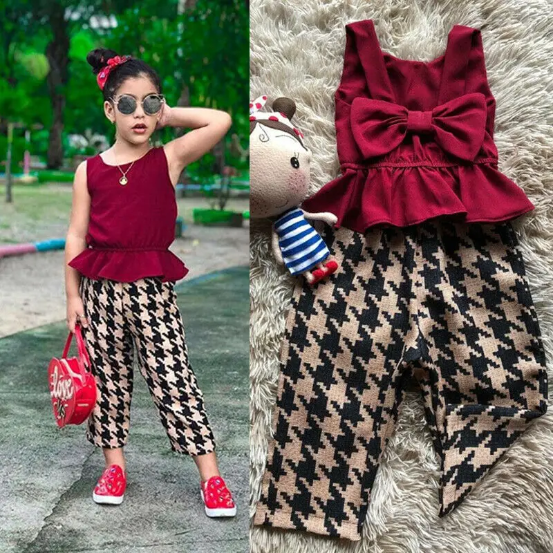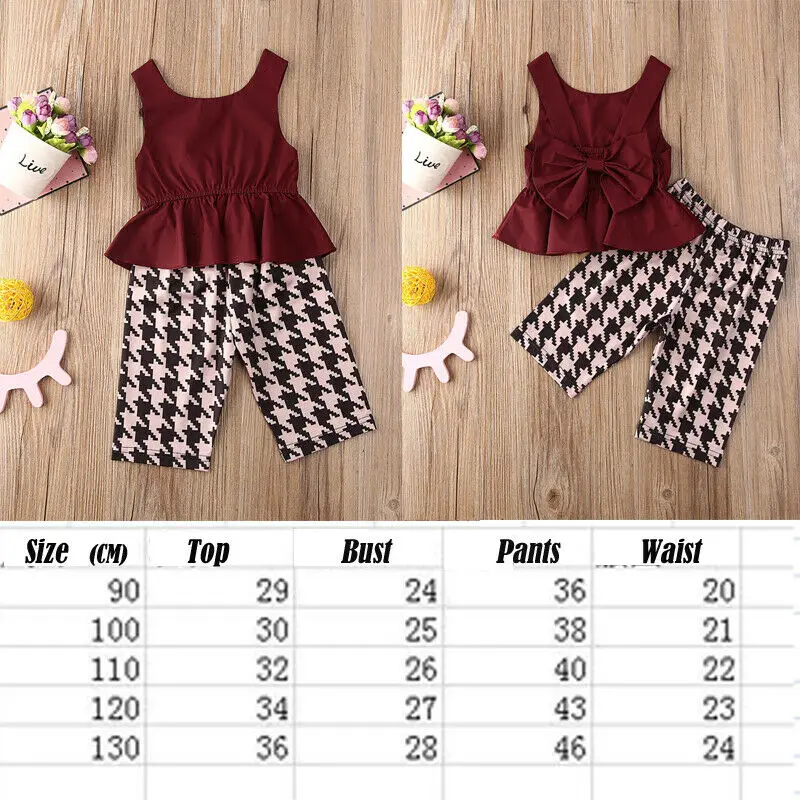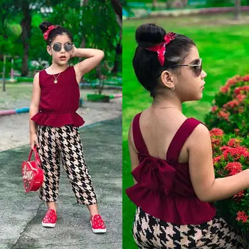 . (30% Off) 買取 CANIS 夏女の赤ちゃん服ちょう結びノースリーブ背中ファッションフリルベスト + チェック柄パンツ衣装 オンライン 価格.