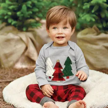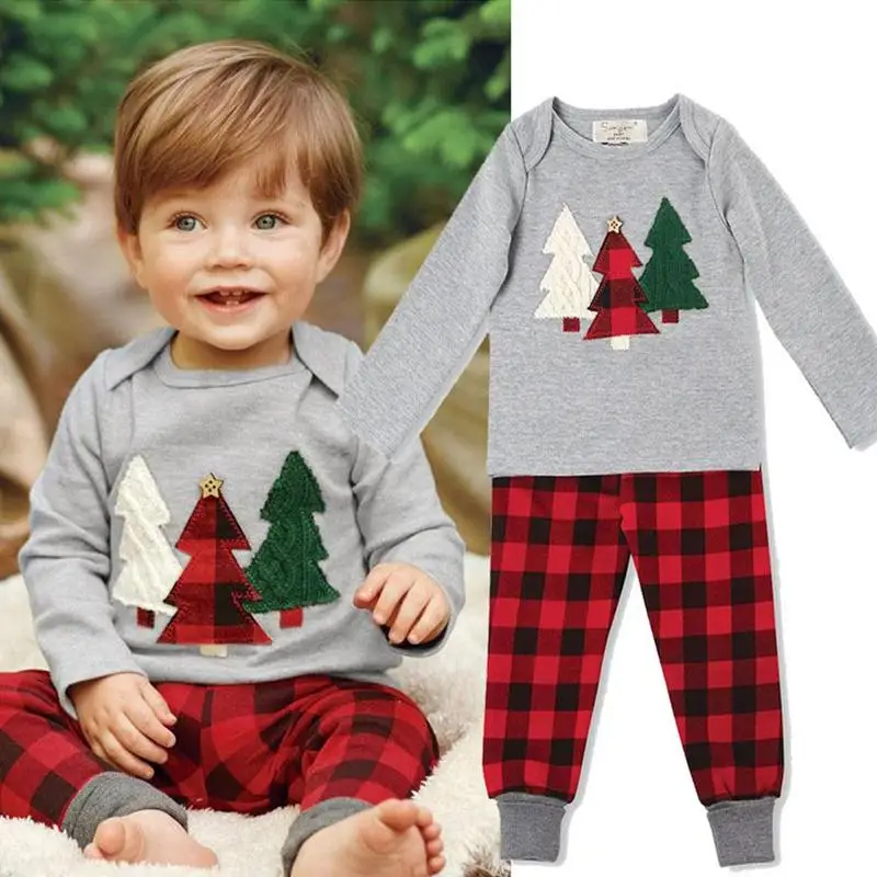 Special Offer クリスマス服セット子供のため冬暖かい高品質ロングパンツセットチェック柄綿スリーブ服G3N1 Discount 31% Today!